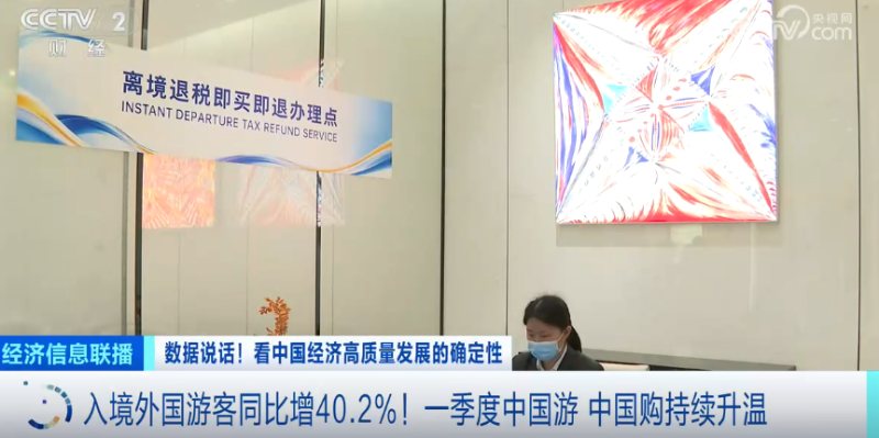 总台央视记者 张嘉乔:同比增长40.2%,这是今年一季度入境外国游客的增长量。目前,我国已对38个国家实行了单方面免签政策,对54个国家实行过境免签并将停留时间延长至240小时,推出一系列入境便利化政策。离境退税,有助于降低境外旅客购物成本,是吸引和扩大入境消费的重要切入点。数据显示,2024年,办理离境退税的商品销售额、退税额同比分别增长1.2倍和1.3倍。针对退税商店偏少,退税购物选择不多等问题,在今天国新办的发布会上,相关部门负责人介绍了优化离境退税政策、扩大入境消费的最新举措。