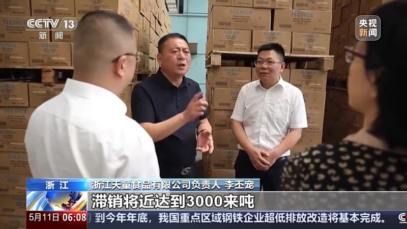 浙江天童食品有限公司负责人 李丕宠:这些库存能够今年给它消化掉,关税如果还是这样挺着,美国市场我们也就慢慢给它放掉了。