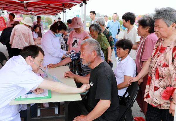 近期,安徽省淮北市迎来小麦丰收的季节。近日,淮北市人民医院将健康体检车、口腔疾病检查车开到濉溪县四铺镇周陈村,为村民开展健康体检,保障麦收工作顺利开展。图为医务人员为村民进行心肺检查。