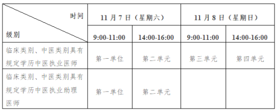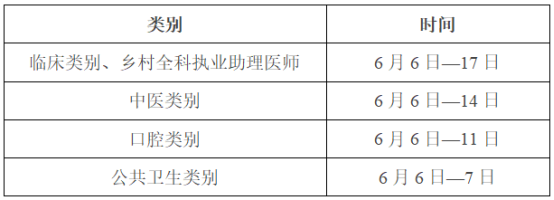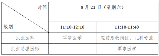考试实行计算机化考试,军队现役人员、文职人员加试军事医学,院前急救岗位和儿科专业加试相应内容。统一考试时间如下: