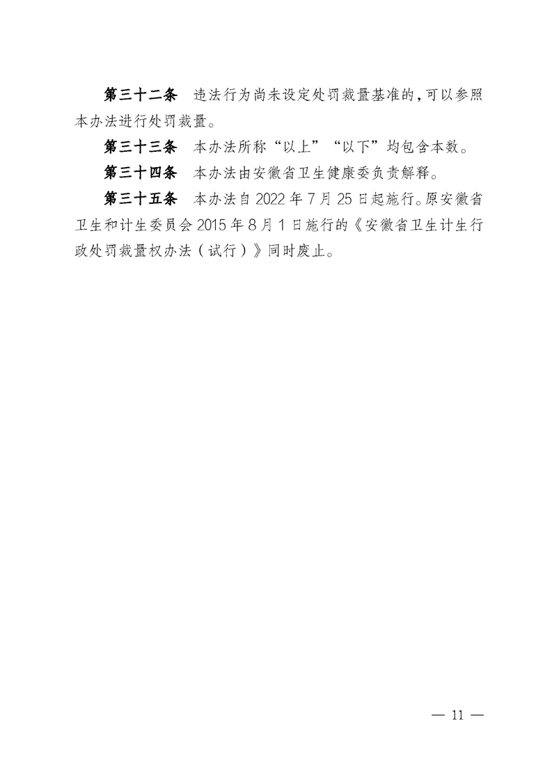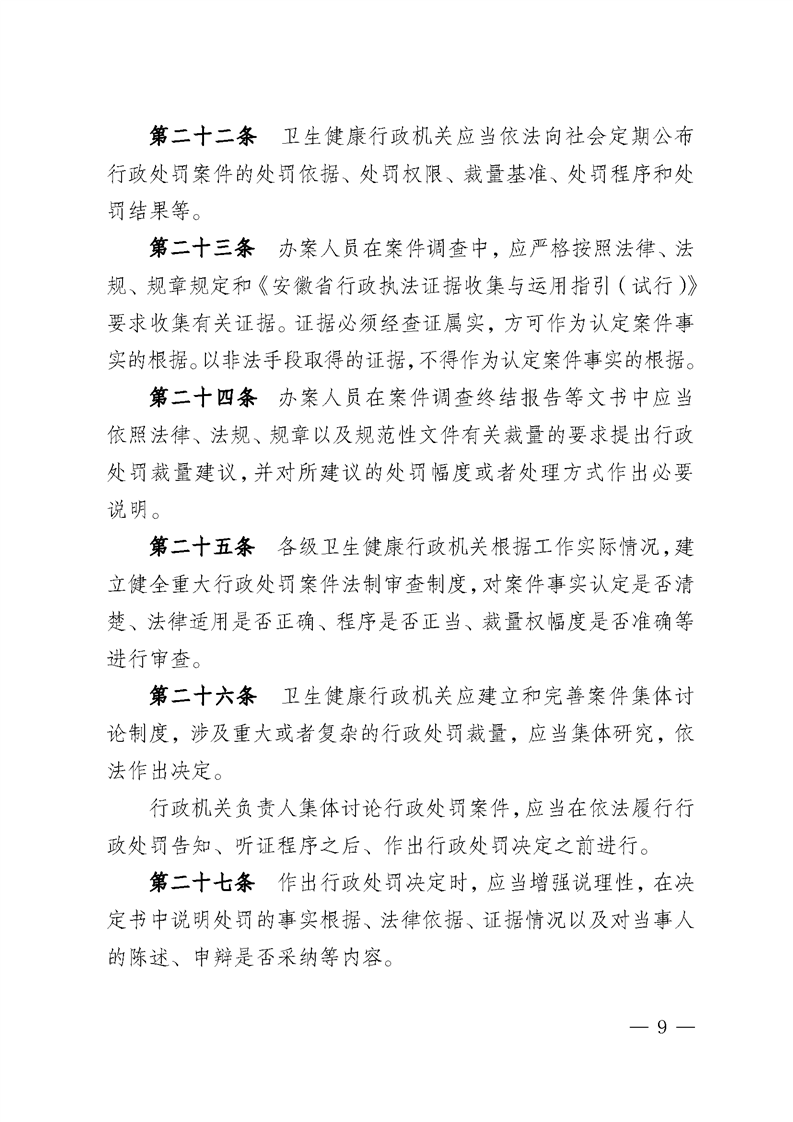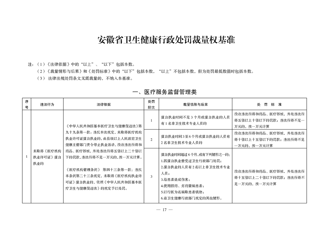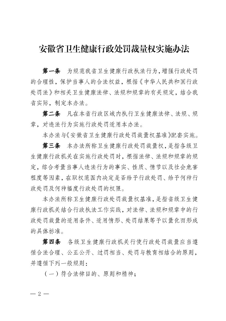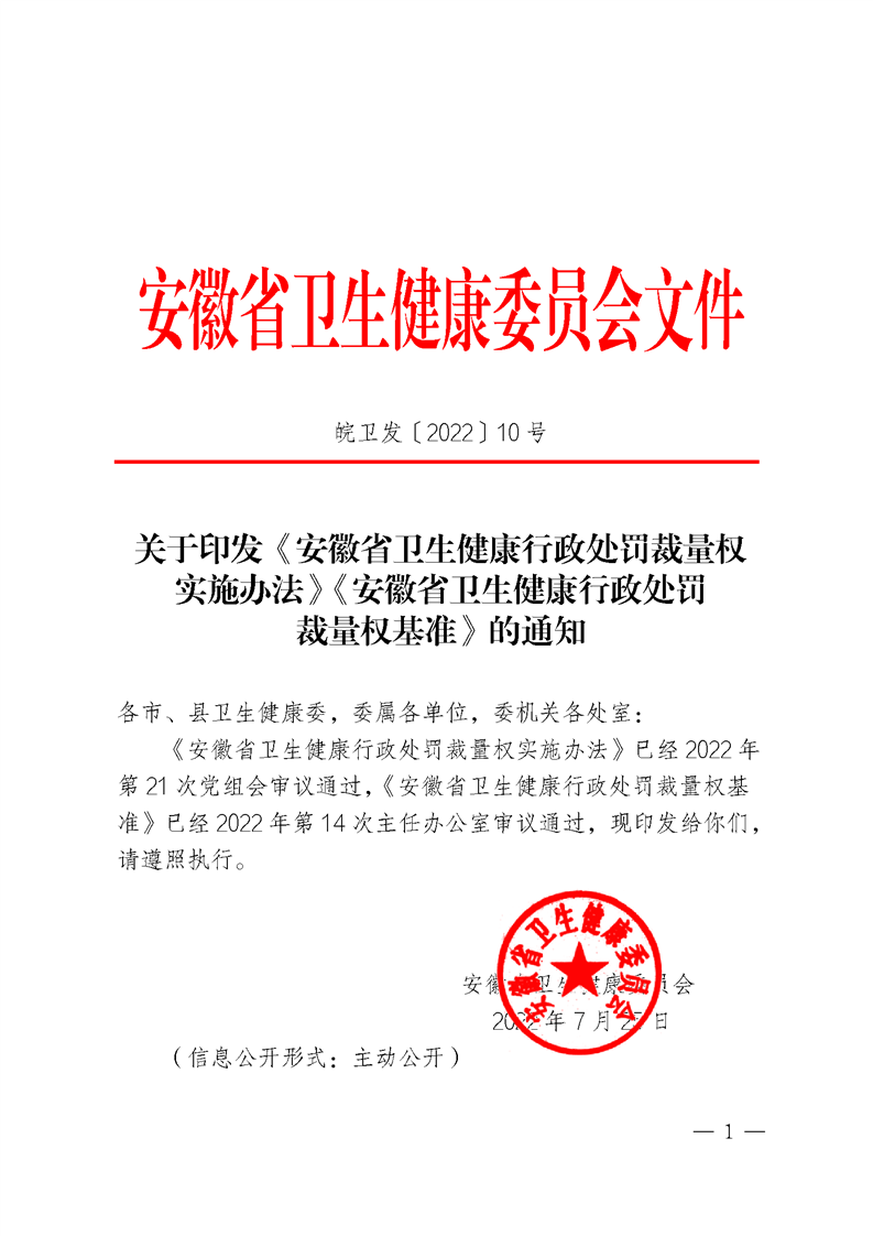 关于印发《安徽省卫生健康行政处罚裁量权实施办法》《安徽省卫生健康行政处罚裁量权基准》的通知