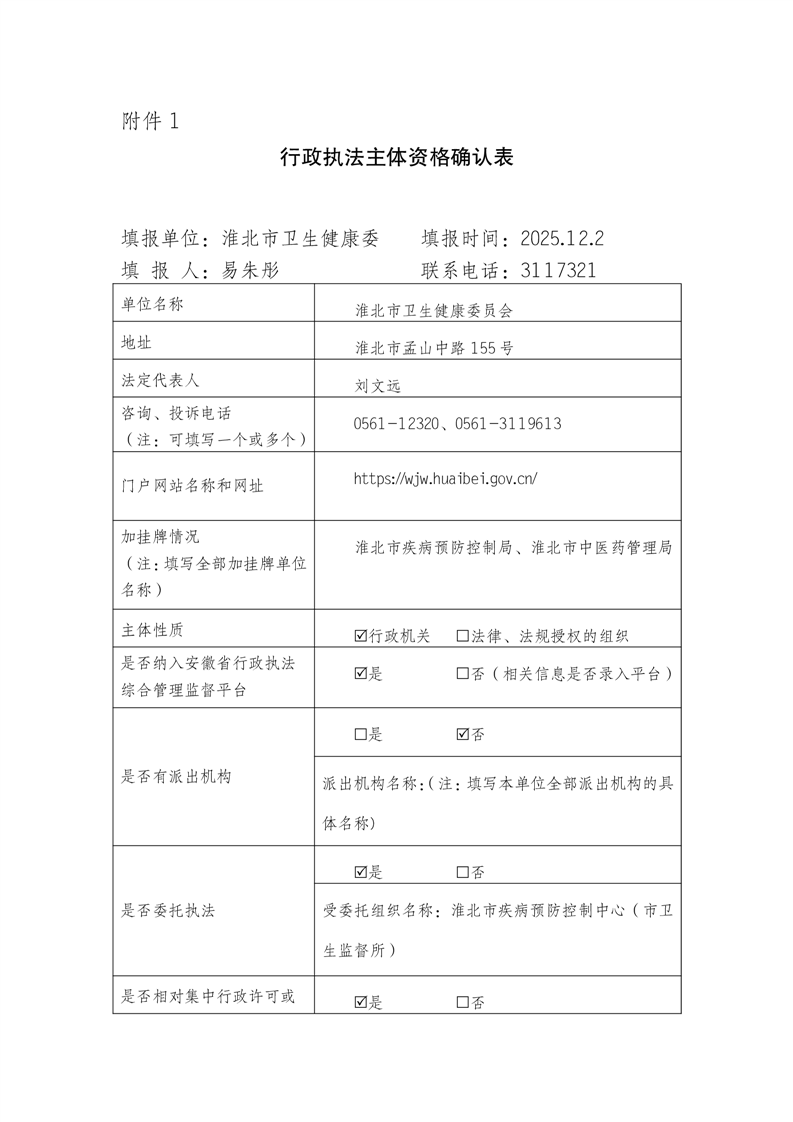 行政执法主体资格确认表 |