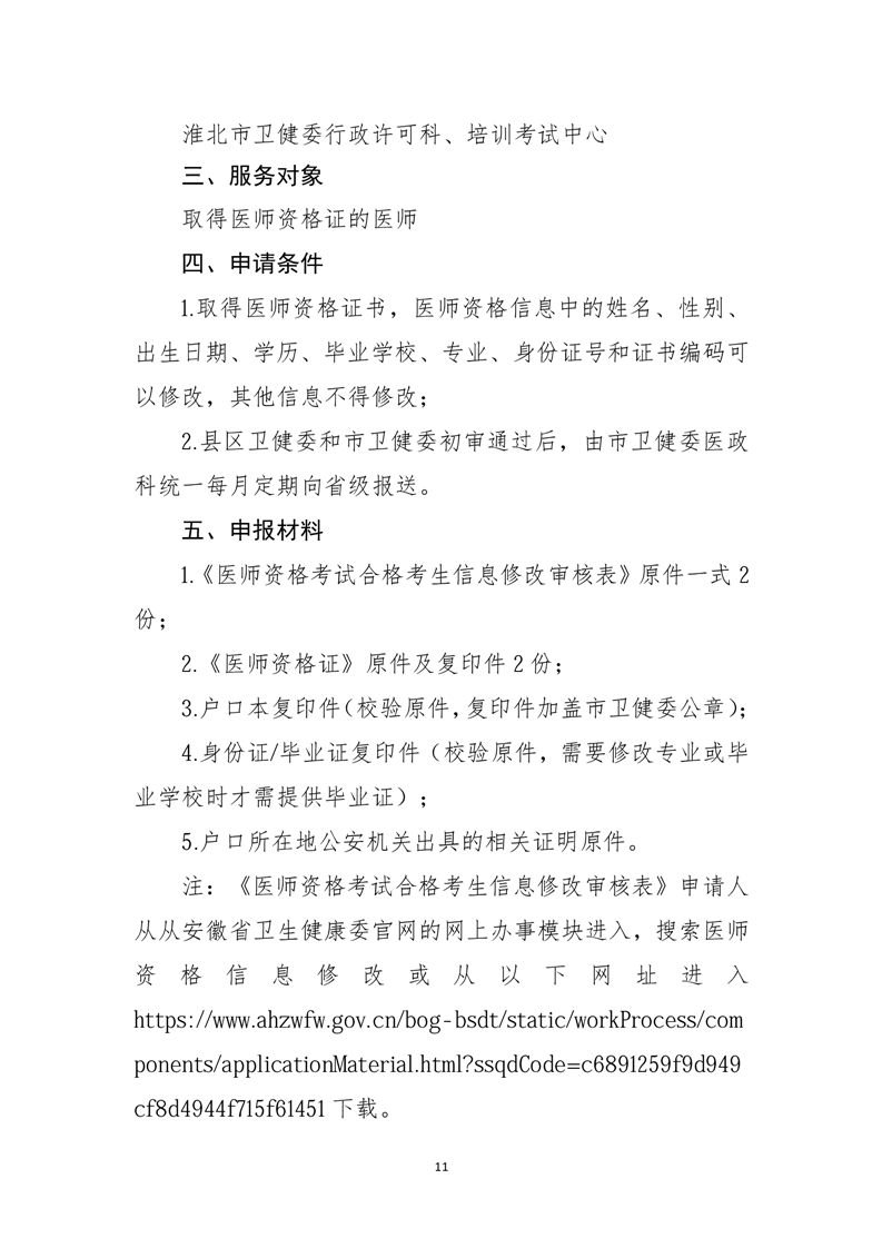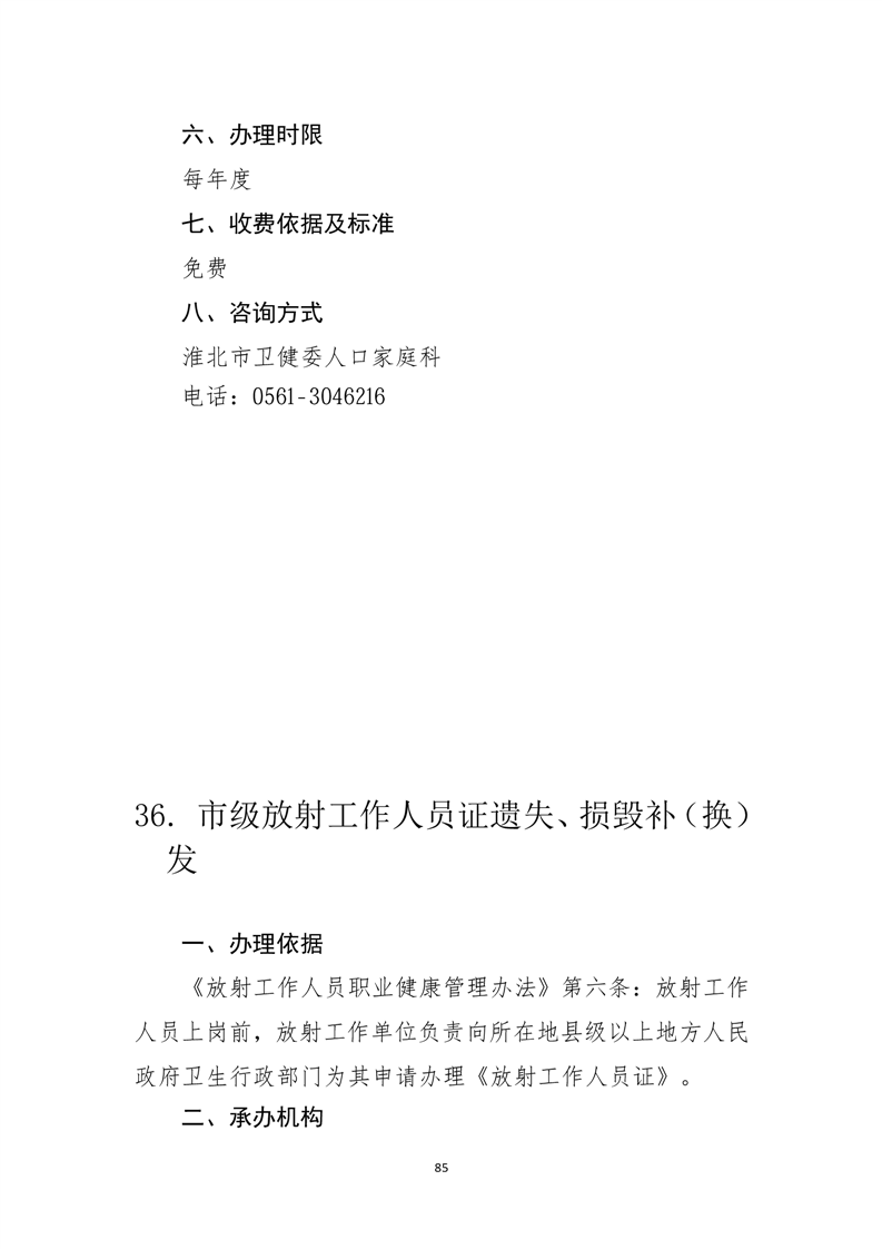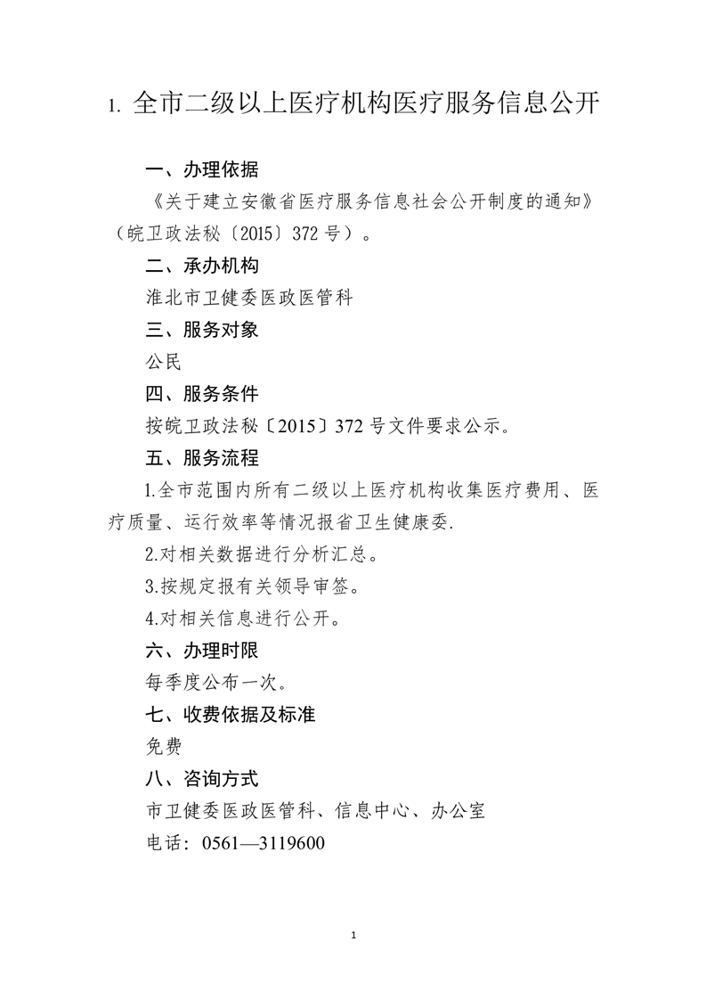 淮北市卫生健康委公共服务事项服务指南(2025年版)
